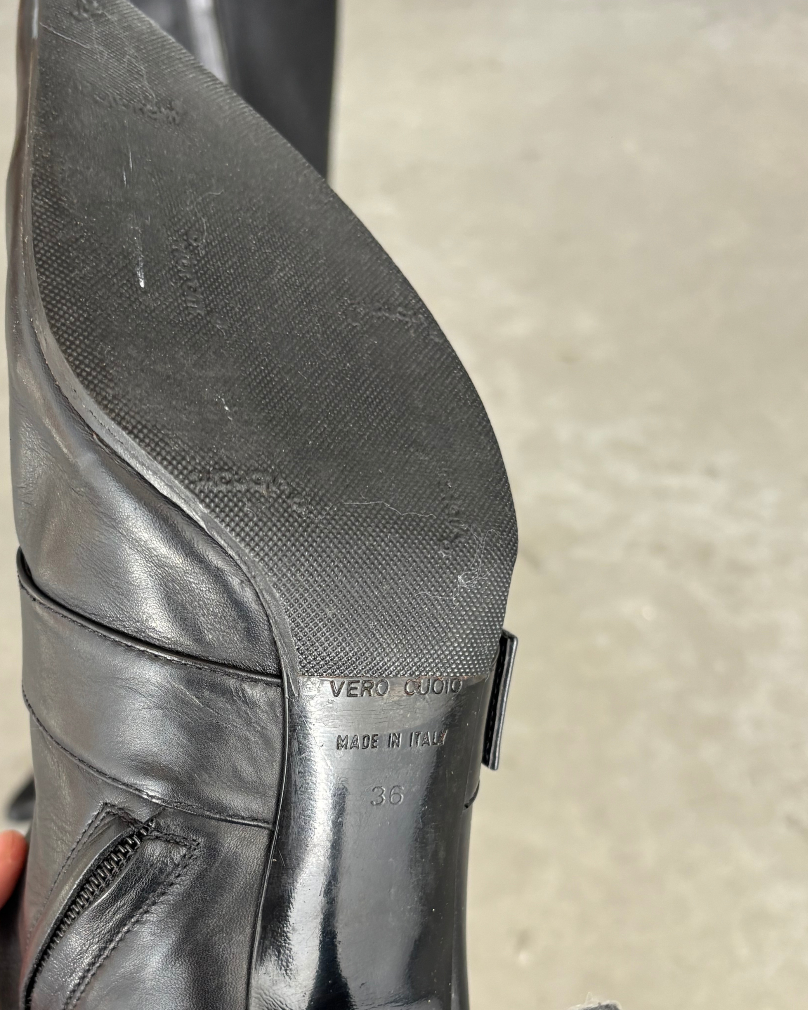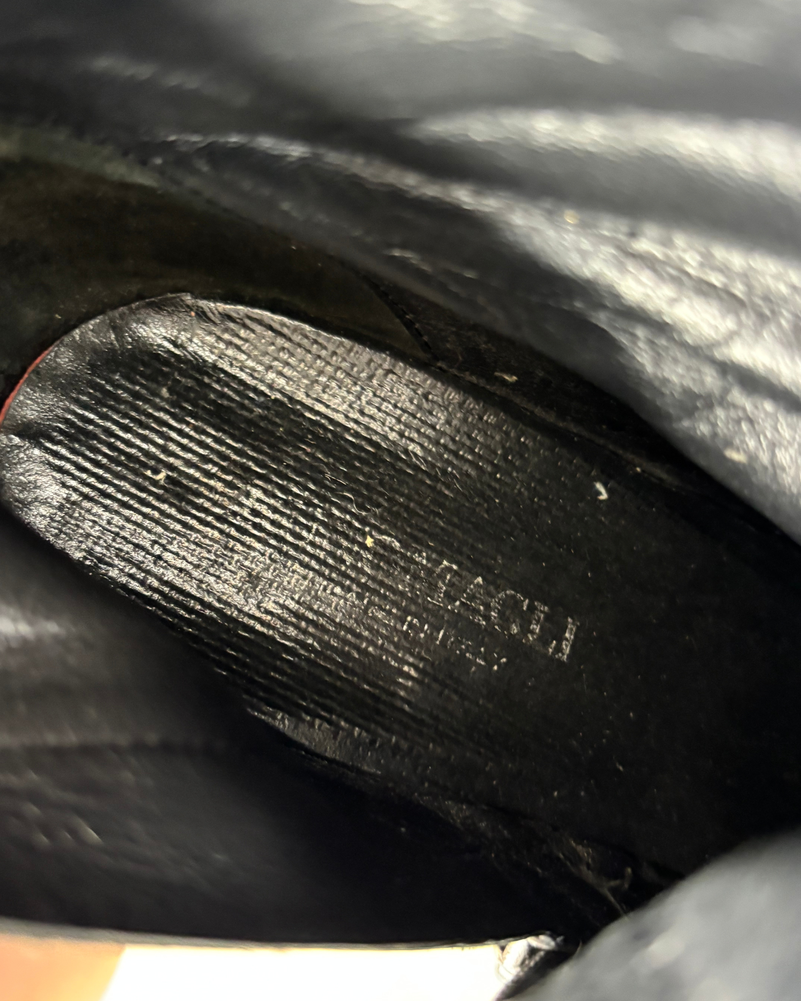 Vintage Bruno Magli Leather boots with silver buckle detailing. Short Silhouette heel.