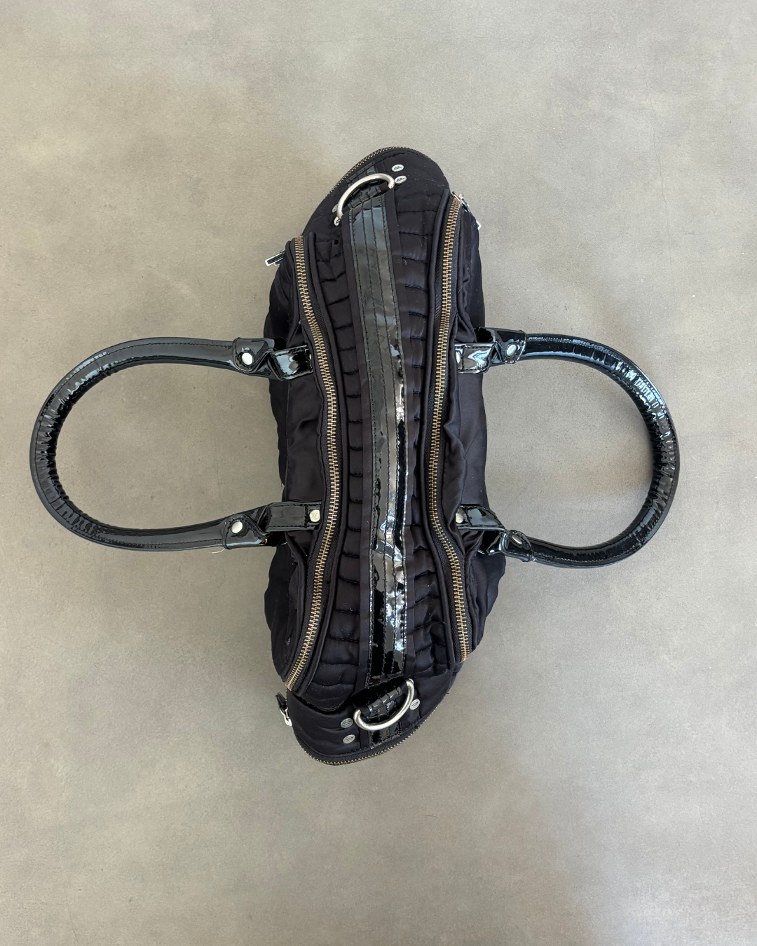 Vintage Black puffer bag from diesel. Large size with silver hardware and patent handle.