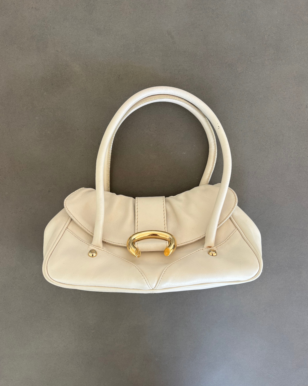Vintage Francesco Biasia white mini bag with gold hardware. clasp closure. Comes with original dust bag.